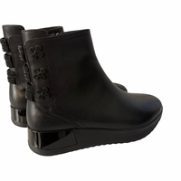 Ghetuțe elegante din piele naturală, produs Epica, perfecte pentru sezonul rece. Designul lor minimalist este completat de detalii rafinate pe spate, cu aplicații discrete care adaugă o notă de feminitate și stil. Se închid lateral cu fermoar, oferind confort și ușurință la încălțare. Talpa ușor înălțată asigură stabilitate și un plus de confort pe durata purtării.